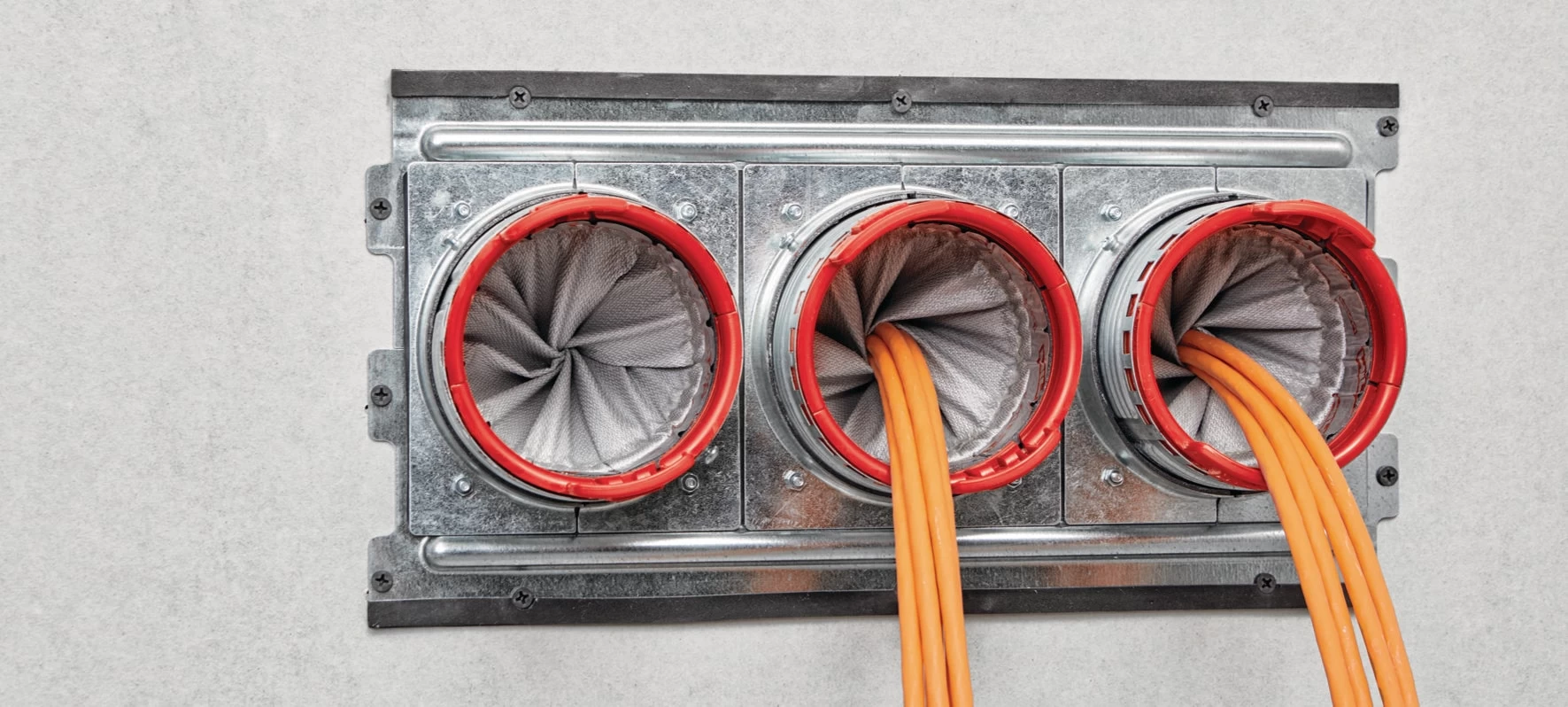 Assembling multiple cable management devices before the drywall is in place, or after drywall installation