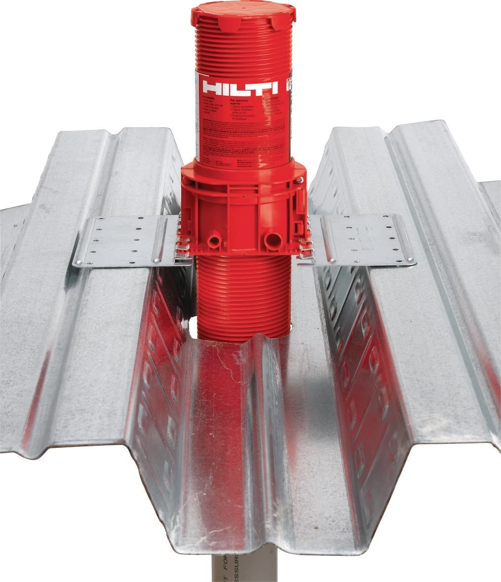 Quicker and more secure connection between the metal deck wings and the firestop cast-in device