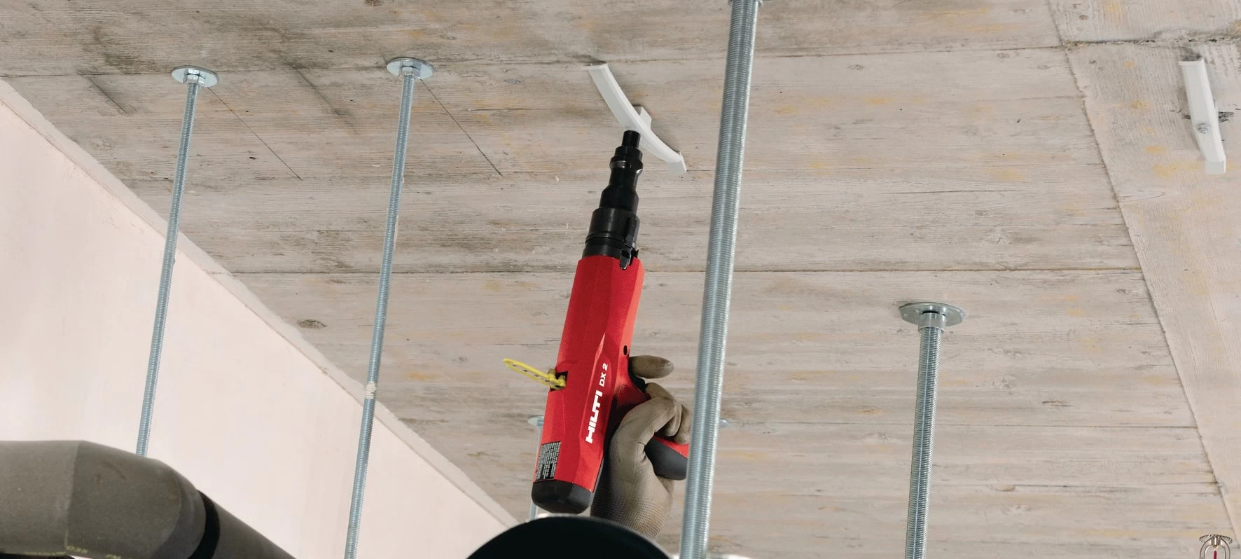 Semi-automatic powder actuated tool for fastening single nails in medium-duty applications on both concrete and steel