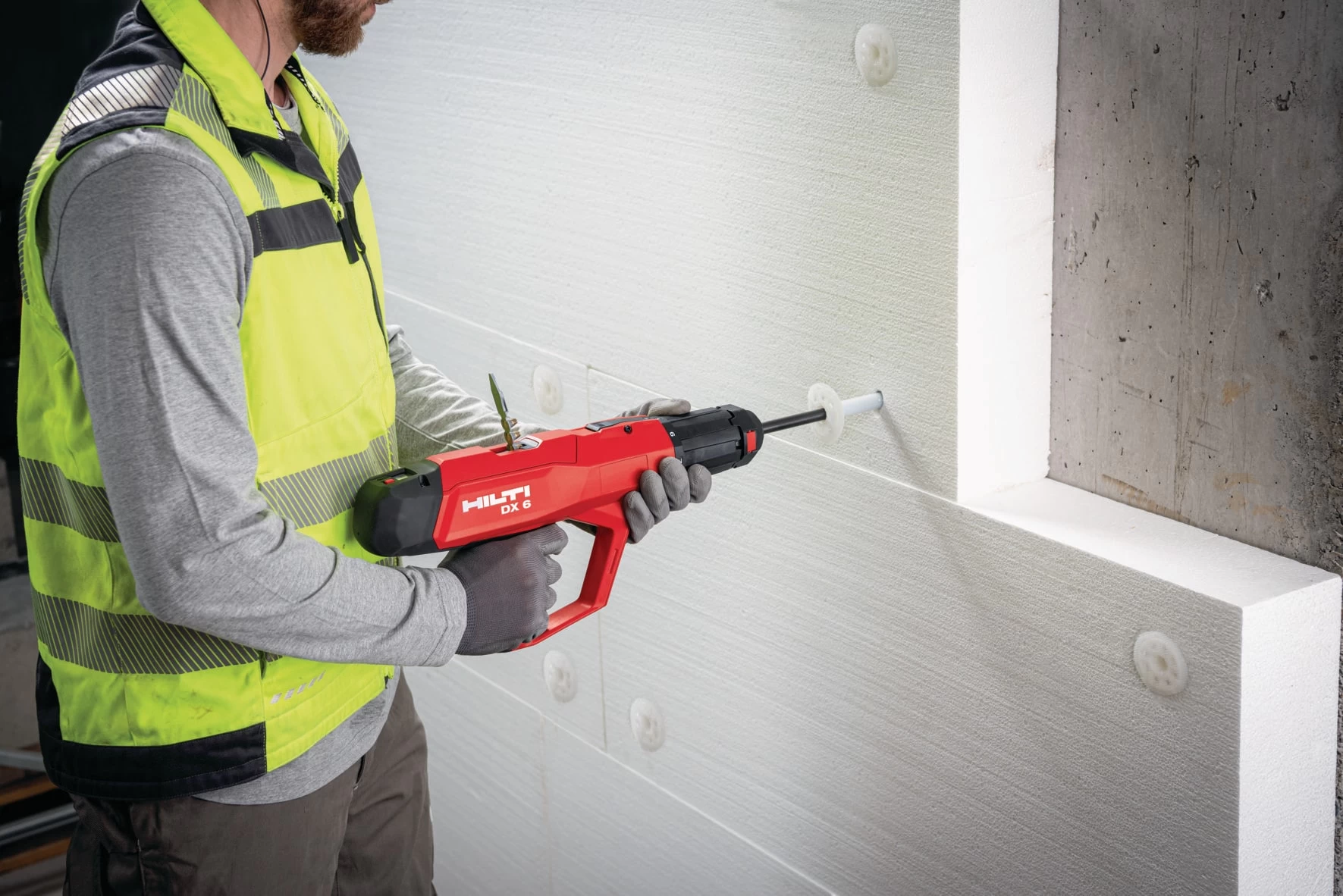 Quick, one-step solution for fastening insulation boards (soft and hard) and mineral wool to concrete, masonry and steel