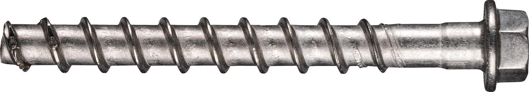 Ultimate screw anchor for quicker corrosion-resistant fastenings in concrete and grout-filled CMU (stainless steel 316, hex head)