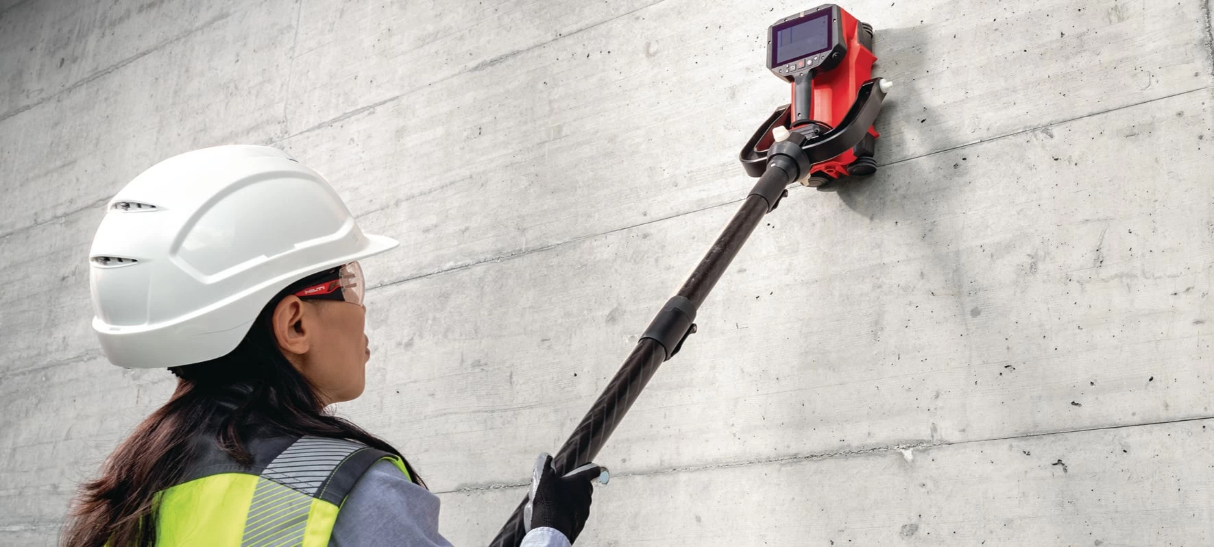 Integrated display provides rebar layout visuals in top view and sectional view for on-the-spot structural analysis