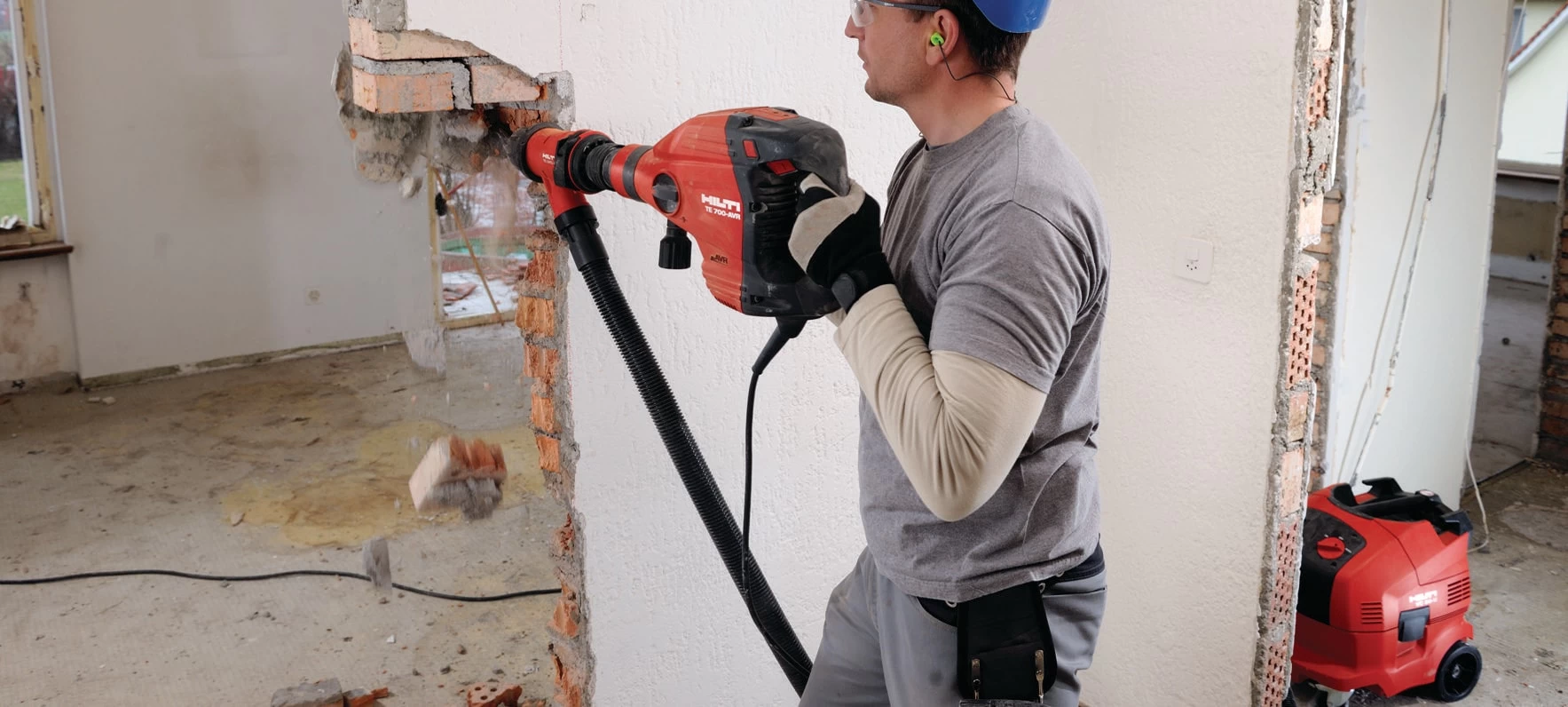 Heavy demolition on masonry and brick walls
