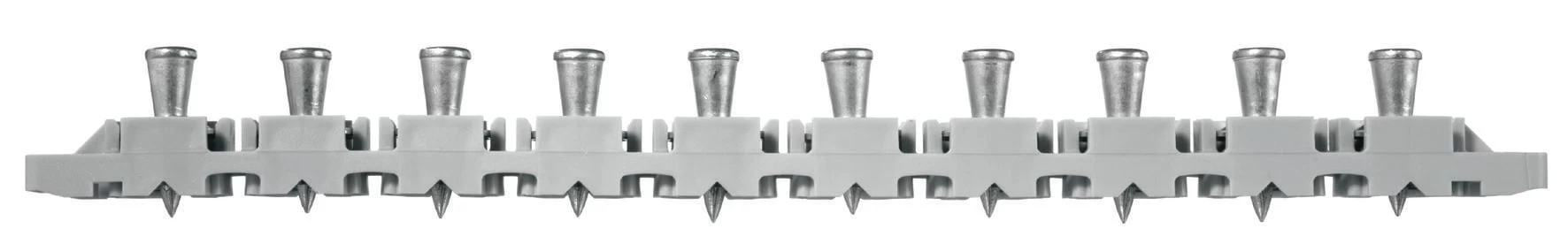 Collated nails for fastening metal decks to steel structures with stand-up powder-actuated nailers