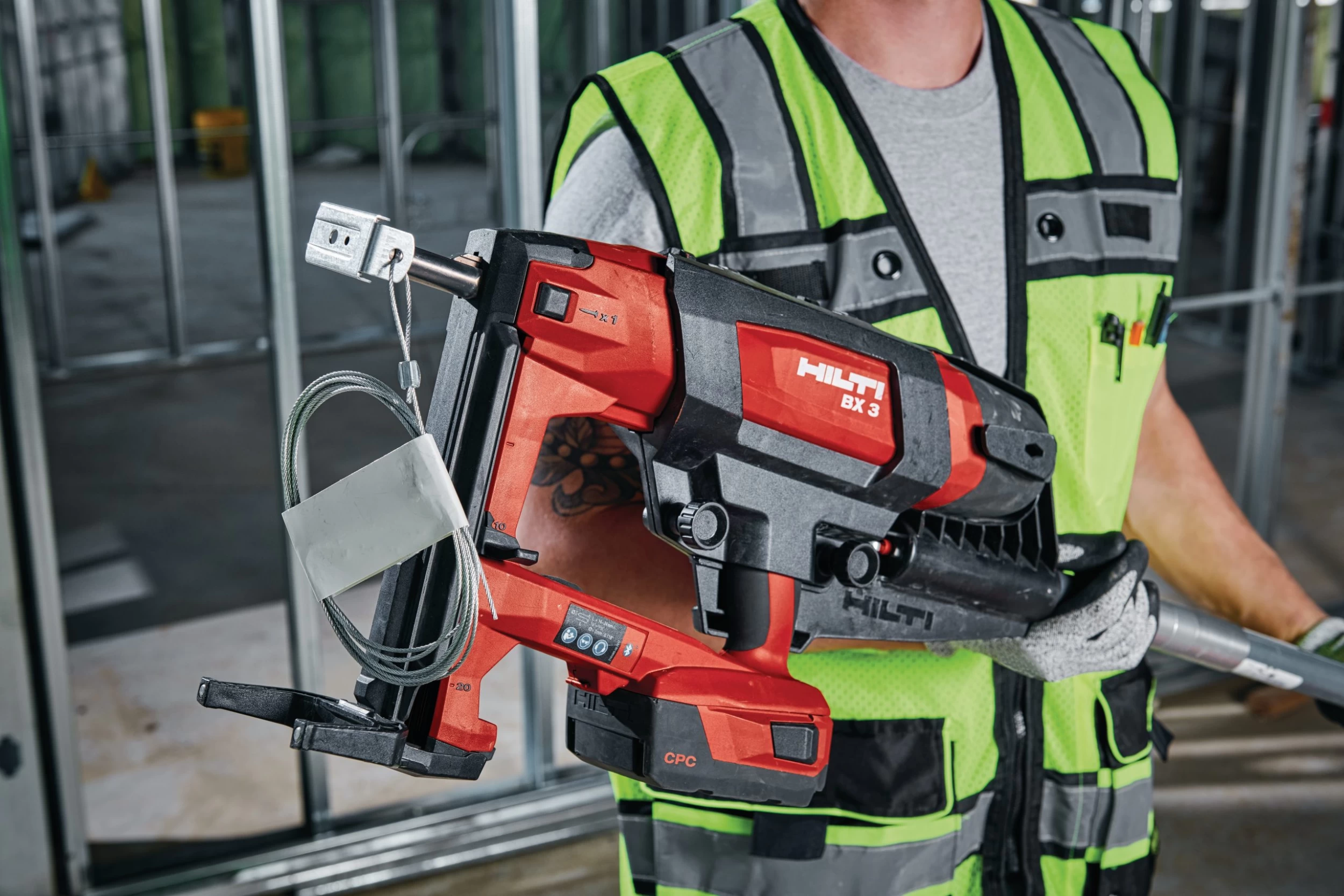 Combustion-free operation – no gas cans or powder cartridges to store and dispose of and no certification required when used with fully electric BX fastening tools,