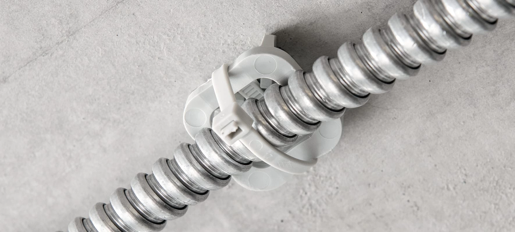 Plastic universal cable/conduit tie holder for use with BX and GX nailers